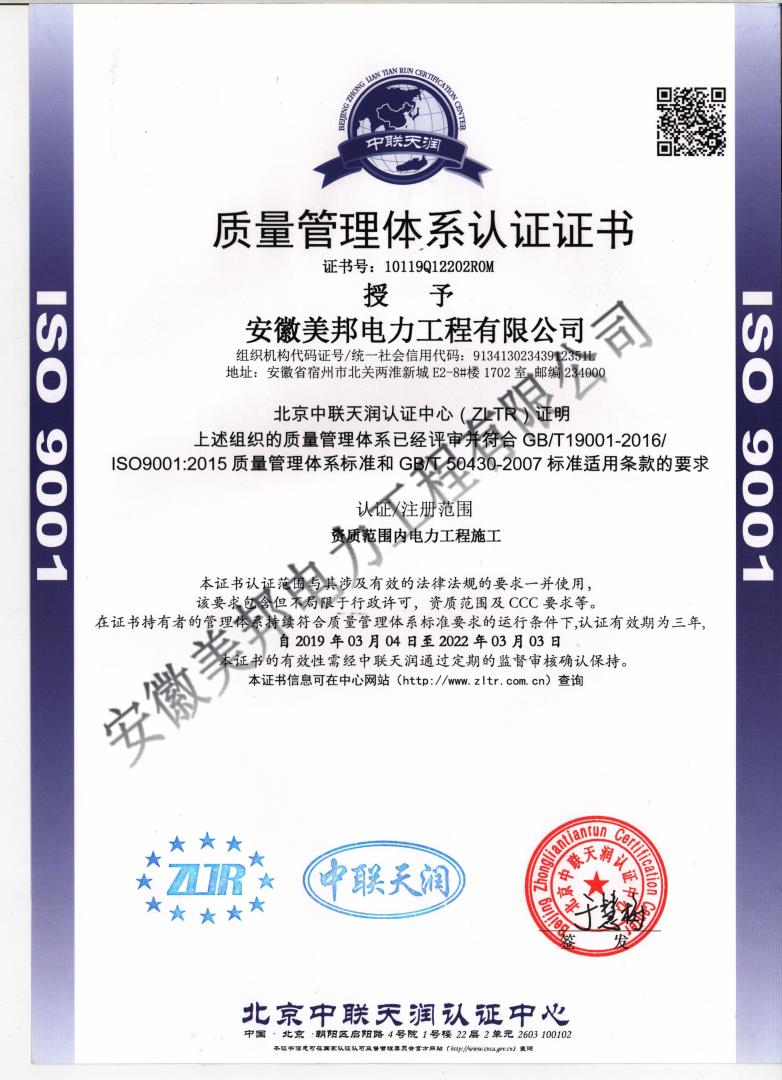 安徽美邦電力工程有限公司成立于2015年6月,坐落于宿州高新區。是一家從事電力工程設計、電力設備生產、電力工程施工、電力托管服務、電力工程搶險為一體的一站式綜合性公司。公司現有各類專業技術職稱的管理人員及大批從事電力工程專業施…